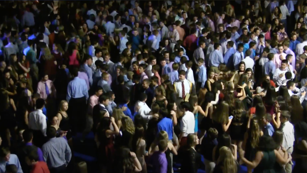 As you can see from the second photo, the gym is absolutely packed. That is an aerial shot of the homecoming dance from “Dance satisfies despite technical difficulties in voting for Homecoming